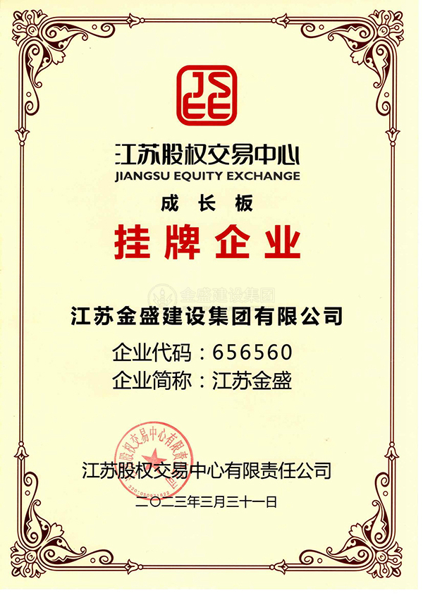 • 江蘇股權交易中心成長板掛牌企業(yè)資質(zhì)證書